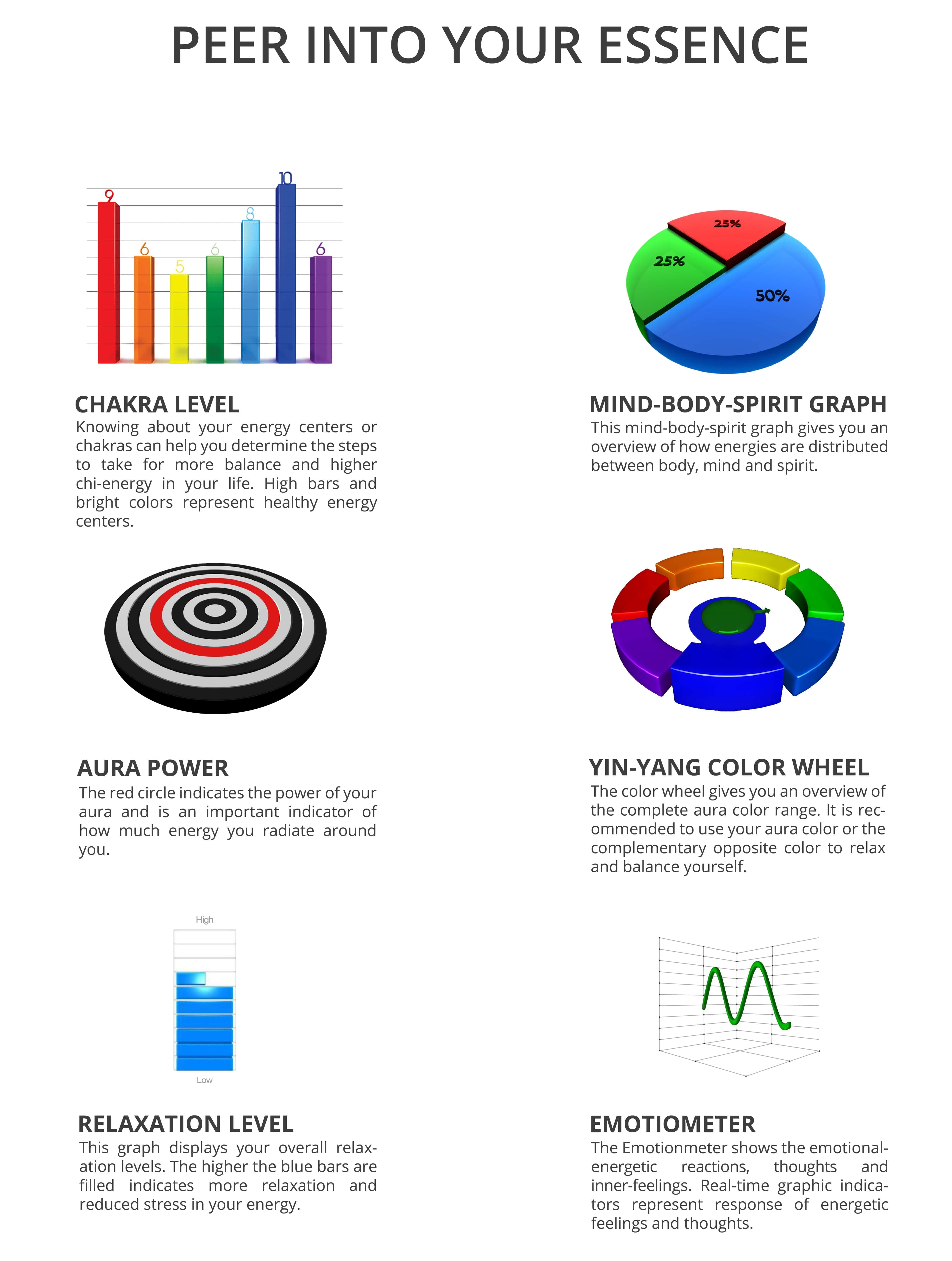 The incredible technology serve's as an essential guide on one’s path to self awareness. By providing you with an easy-to-understand interpretation of aura-chakra energies, you can further your understanding of your personal and emotional well-being.